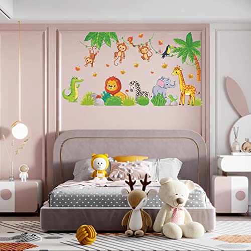 VIKSAUN Animale Adesivi Murali, Adesivi da Parete per Camera Bambini, Adesivi Murali Animali della Giungla, Adesivi da Parete Giraffa Elefante Scimmia, Decorazione Camerette Bambini Murale