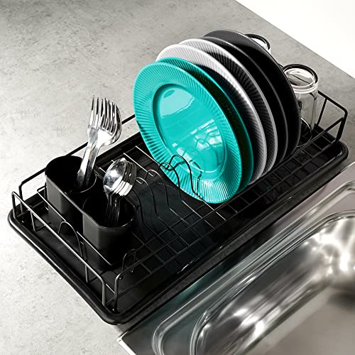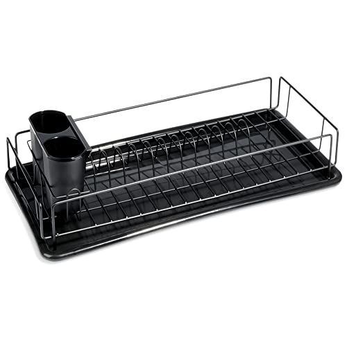Vilde Scolapiatti per piatti, tazze e posate, 50 x 24 x 9 cm, un elemento necessario per ogni cucina, acciaio inossidabile, plastica, nero