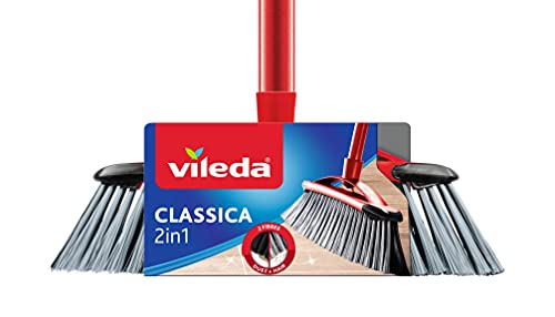 Vileda Classica 2 in 1 Scopa con Manico, Fibre per Polvere e Capelli, Plastica, Rosso/Nero, 32x5.3x78 cm