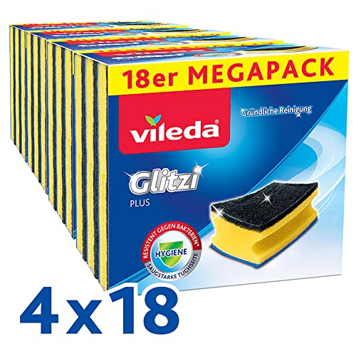 Vileda Glitzi Plus con Antibac Spugne efficaci, igieniche ed assorbenti (4x18), 4 Unità