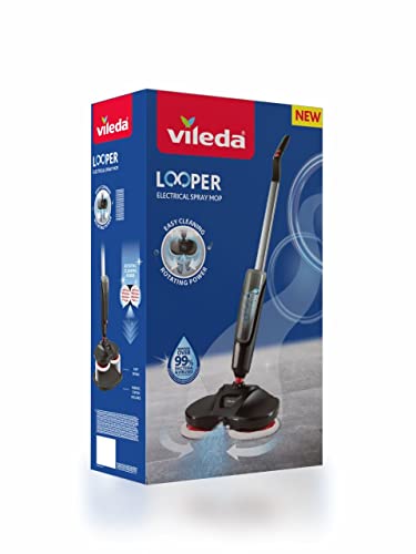 Vileda Looper, Sistema lavapavimenti Elettrico Spray Senza Filo, pulisce Angoli e superfici sotto ai mobili, Quantità D'Acqua Regolabile, rimuove Fino al 99.9% di batteri e Virus, Autonomia 35 Minuti
