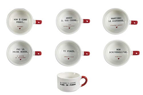 Villa d'Este Home Tivoli 5906745 Caffeomanzia Love Cynical Mood Set 6 tazzine 90 ml in Bone China, 90 milliliters, Grès