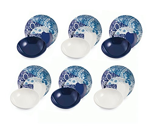 Villa d'Este Home Tivoli Deep Blue Servizio Piatti 18 Pezzi, Porcellana e Gres, Blu
