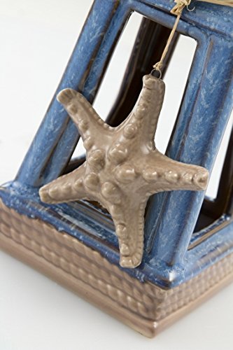 Villa d'Este Home Tivoli Sea Lanterna con Stella Marina, Ceramica, Blu/Marrone, 12x12x28 cm