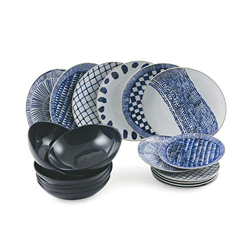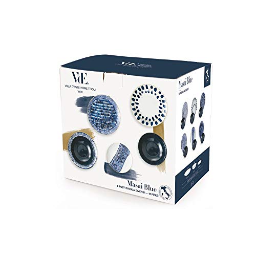Villa D'Este Home Tivoli Masai Blue Servizio di Piatti 18 Pezzi