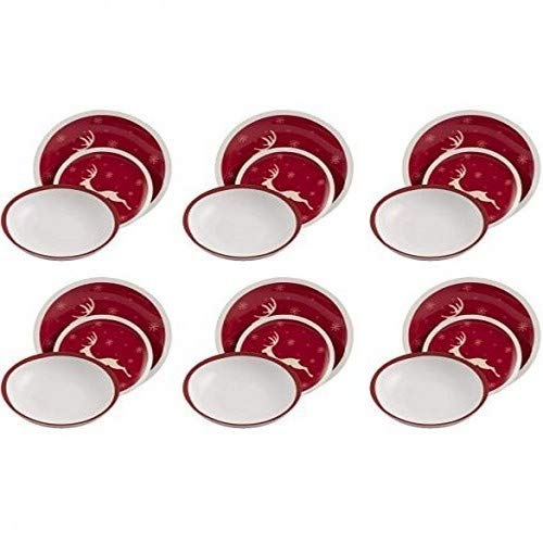 Villa d'Este Home Tivoli Reindeer Servizio Tavola, Porcellana, Rosso, 27x27x5 cm, 18 unità