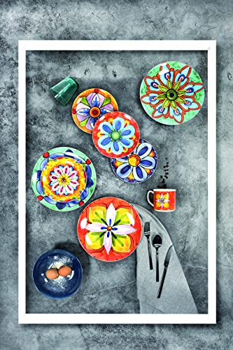 6 posti tavola in 6 diversi decori nella confezione Il servizio si compone di 6 piatti piani, 6 piatti fondi, 6 piatti frutta
