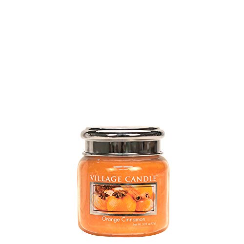 Village Candle - Candela in barattolo di vetro con coperchio in metallo, da 100 ml, fragranza: arancio e cannella