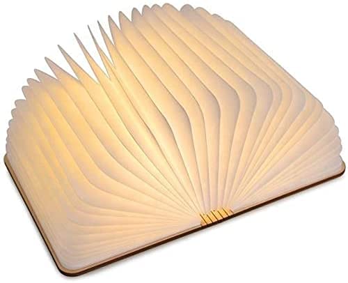 VILLAGEBOOM Grande lampada LED libro a forma di libro libro in legno con batteria da 2000 mAh ricaricabile USB lampada decorativa pieghevole a 360° scrivania libro luce notturna regalo creativo