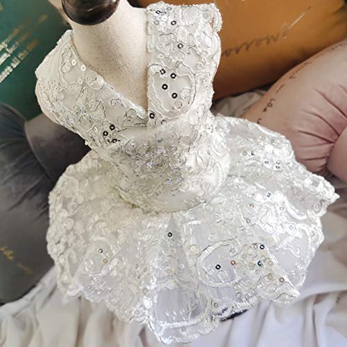 VILLCASE Argento Elegante Abito Corto per Cani Gonna Estiva per Cani Vestiti in Pizzo Traspirante Paillette Costume Delicato Abbigliamento per Animali da Sposa - Taglia XS-Prodotti per Animali