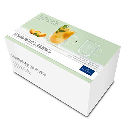Contenuto: due tazze Artesano Hot & Cold Beverages, 390 ml misurato all'orlo, materiale: vetro borosilicato, colore: trasparente