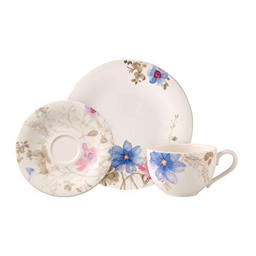 Contenuto: 1x Villeroy & Boch Mariefleur Gris Basic servizio da tavola, 12 pezzi, materiale: porcellana premium, colore: bianco/multicolore