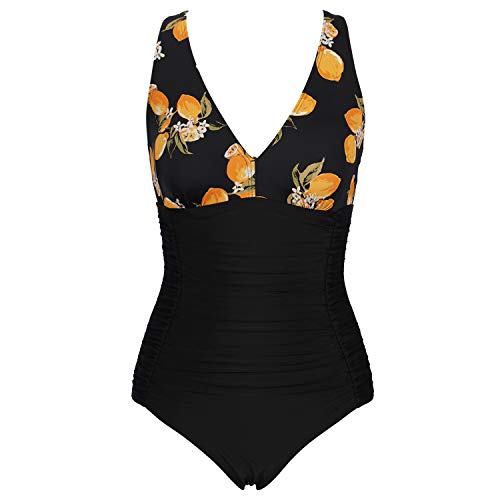 Viloree Costume Intero Donna Push Up Monokini Beachwear dello Swimwear Imbottito da Spiaggia Mare e Piscina Nero con Limone XL