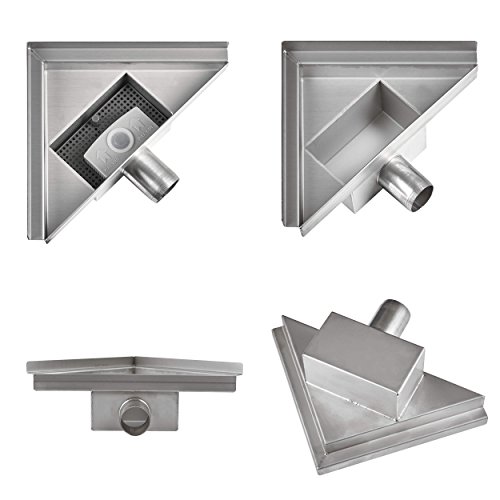 VILSTEIN VS-DB02-25R Canalina sifone per Pavimento e Doccia, Triangolare, Scarico Bordo, 25 x 25 cm, Argento, 25x25cm