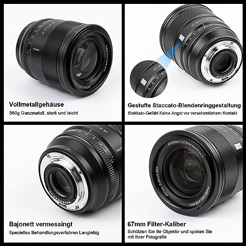 【Rilevanti prestazioni in condizioni di scarsa illuminazione】Obiettivo VILTROX 27 mm Cattura scatti straordinari anche in scene notturne buie grazie all'apertura super ampia di F1,2. Raggiunge velocità dell'otturatore più elevate e impostazioni ISO più basse, consentendo di realizzare video nitidi ed espressivi con eccellenti prestazioni in condizioni di scarsa illuminazione.