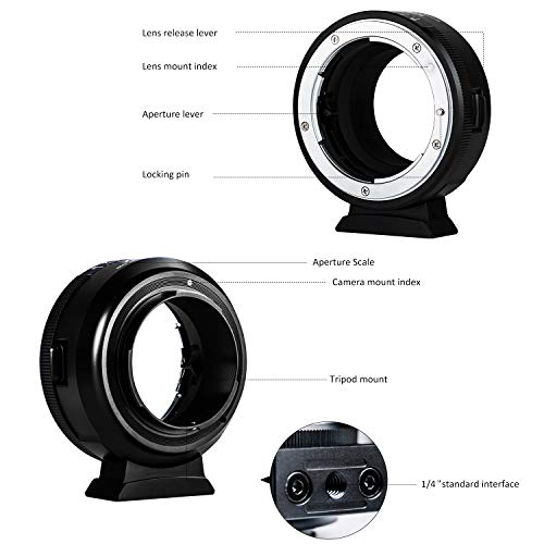 L'adattatore per obiettivo è progettato con un quadrante di apertura senza clic incorporato che viene fornito con 8 arresti esatti e un piedino per treppiede da 1/4 staccabile. Verniciatura speciale del foro di apertura per ridurre al minimo i riflessi interni. Pesa solo 140 g.