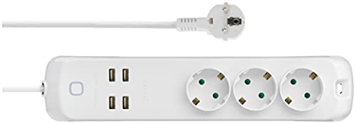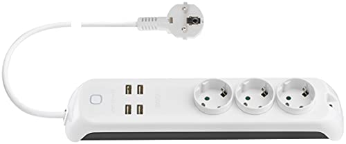 Vimar 00447.CK.B Presa multipla smart, compatibile con Alexa e Google Home, 3 uscite SICURY, 4 porte USB, interruttore luminoso, telecomando locale e remoto tramite applicazione, spina standard DE/FR