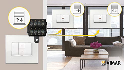 Vimar 03997 Modulo centrale tapparelle Quid, 2 ingr pulsante NO, 6 uscite per modulo relè tapparelle Quid 03996, installazione in scatole di derivazione o portafrutto
