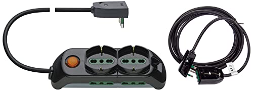 VIMAR Fp00521.C Presa Multipla Con Interruttore Luminoso, 2 Prese Universali, 4 Biprese Sicury & 0P32364 Cavo Prolunga 3G0, 75 + Spina Piatta 3M, Nero