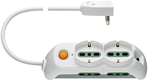 Vimar FP00523.c.b presa mobile multipla 2p+t 16 a 250 v, 2 uscite sicury universale standard italiano tipo p40, 4 uscite sicury standard italiano tipo p17/11, interruttore luminoso, limitatore di sovratensioni (spd), cavo da 1, 5 m con 3 conduttori da 1 mm2 (3g1), spina orientabile ricollegabile 2p+t 16 a standard italiano tipo spb17, bianco