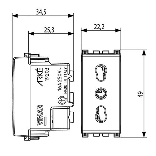 Vimar Presa 2Pcon T 16A P17/11, Grigio