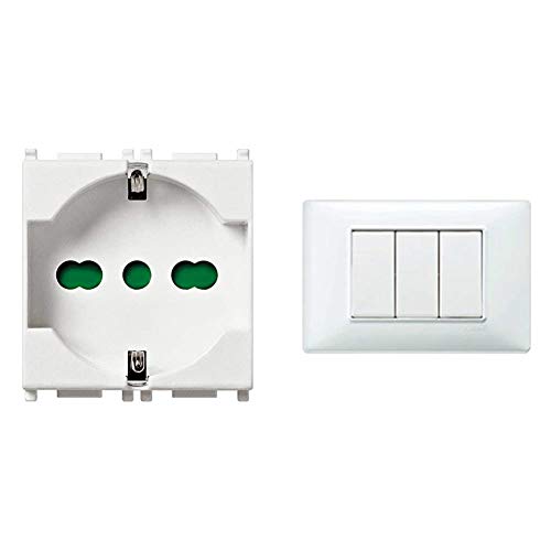 Vimar Presa 2Pcon T 16A Universale, Bianco & Placca 3 m, Bianco