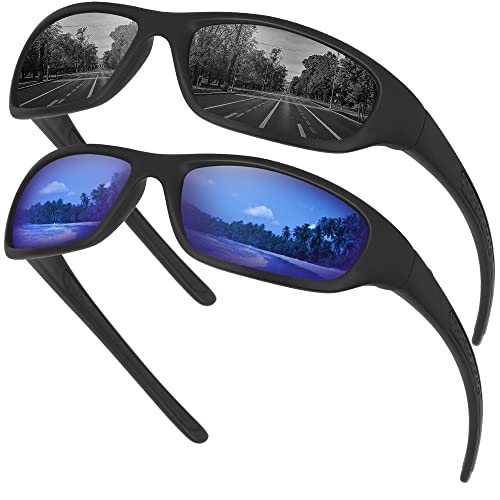 Vimbloom Occhiali da sole Polarizzati da Uomo e Donna Sportivi UV400 Protezione Montatura in Leggera per Guidare, Andare in Bici, Pescare, Ciclismo, Golf VI367 (Nero opaco & Nero opaco blu)