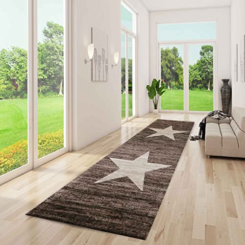 VIMODA di Moda Pelo Corto Tappeto Moderno Stelle Motivo Erica Rosso Grigio - Öko-Tex Certificato - Beige, 60x110 cm