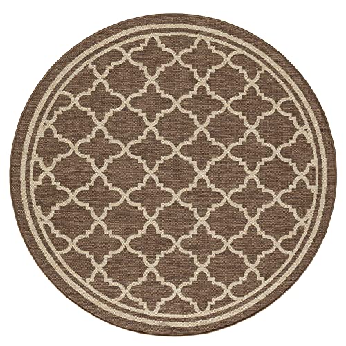 VIMODA Tappeto per interni ed esterni, in tessuto piatto, resistente alle intemperie, per giardino d'inverno, robusto, design marocchino, colore: marrone, dimensioni: 80 x 150 cm