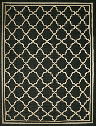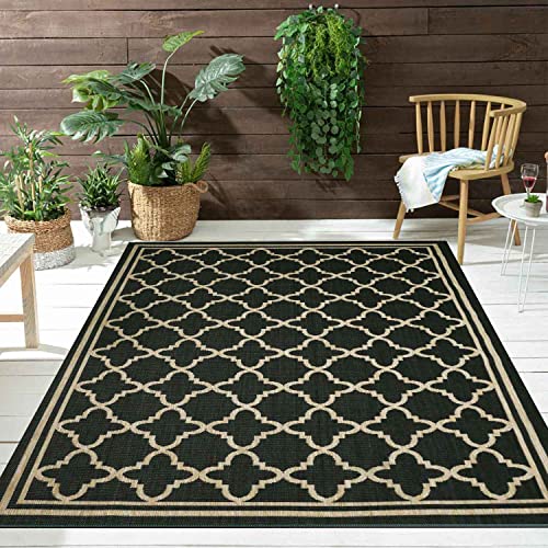 VIMODA Tappeto in tessuto piatto per interni ed esterni, resistente alle intemperie, robusto design marocchino, colore: beige-nero, dimensioni: 140 x 200 cm