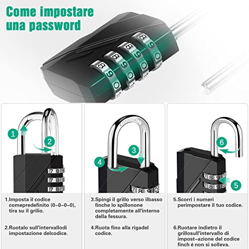 ✔️【Facile da usare】 L'impostazione o il ripristino della propria combinazione è semplice e diretto. La password originale è 0000. Ogni lucchetto a combinazione è dotato di chiare istruzioni nella borsa a tracolla. Impostare o ridefinire la propria combinazione è semplice e facile da usare.