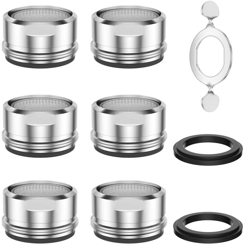 Filtro per rubinetto M24, 6 pezzi rubinetto aeratore. Dati tecnici: materiale dell'alloggiamento: ottone cromato. Materiale del filtro: filtro in acciaio inox. Altezza: 12 mm. Filettatura esterna: M24: chiave: acciaio al carbonio cromato. Contenuto della confezione: 6 manopole per rubinetto, 8 guarnizioni, 1 chiave per ugello miscelatore cromato