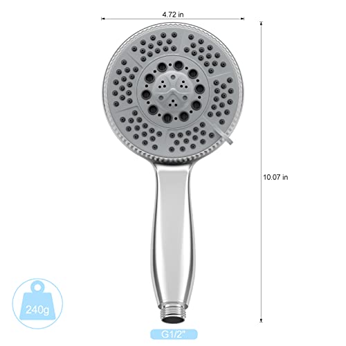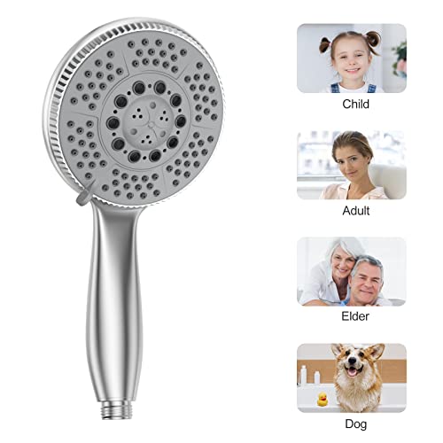 Vinabo Soffione Doccia con 5 Getti, Universale Regolabile Funzioni Testa Doccia a Mano ad Alta Pressione, ABS Cromato Soffione con Ugello in Silicone Autopulente e Impugnatura Ergonomica, D'argento