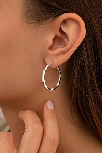 Design moderno: i classici orecchini a cerchio sono realizzati in puro argento sterling 925. Un componente moderno e eccezionale conferisce il design grazie al filo ondulato a forma di onda. La superficie lucida conferisce al gioiello un aspetto elegante e moderno.