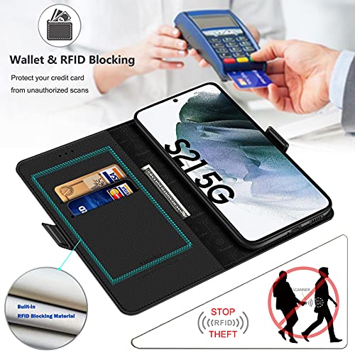 [Portafoglio + blocco RFID]: Questa custodia portafoglio Galaxy S21 è dotata di due slot per carte e di una tasca laterale, può contenere biglietti da visita, carte di credito, contanti. Lo scomparto interno dello slot per schede è realizzato in materiale di blocco RFID per impedire la lettura non autorizzata dei dati della tua carta di credito