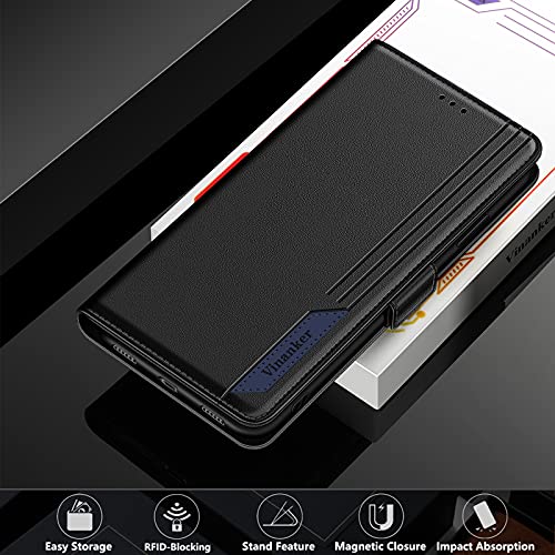 Vinanker Cover per iPhone 11, Flip Cover in Pelle Premium Portafoglio con Blocco RFID Custodia per Apple iPhone 11 (Nero/Blu)