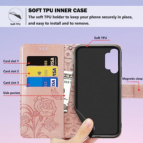 [Funzione portafoglio]: Questa custodia portafoglio Samsung A13 è dotata di tre slot per carte e di una tasca laterale, può contenere biglietti da visita, carte di credito, contanti, ecc