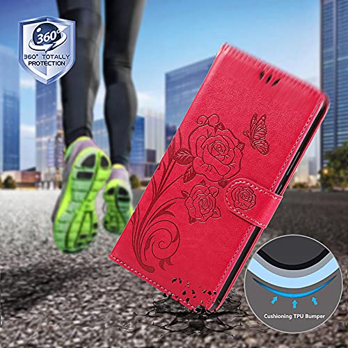 Vinanker Cover per Samsung Galaxy M11, Flip Cover in Pelle Premium Portafoglio Custodia per Samsung Galaxy M11 (Rosso)