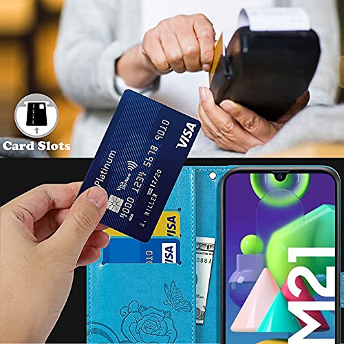 [Funzione portafoglio]: Questa custodia portafoglio Galaxy M21 è dotata di tre slot per carte e di una tasca laterale, può contenere biglietti da visita, carte di credito, contanti, ecc