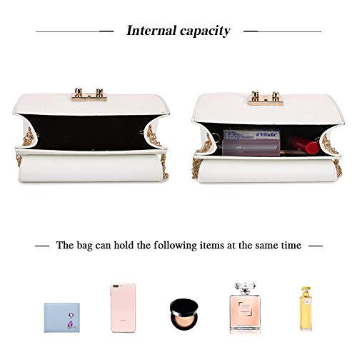 TRACOLLA CON CATENA A SPIRALE: Borsetta tracolla donna piccola bianco utilizza una catena metallica intrecciata a spirale, che è più pregiata e più solida delle catene ordinarie, e ha una maggiore capacità di carico per ridurre il carico sulle spalle.