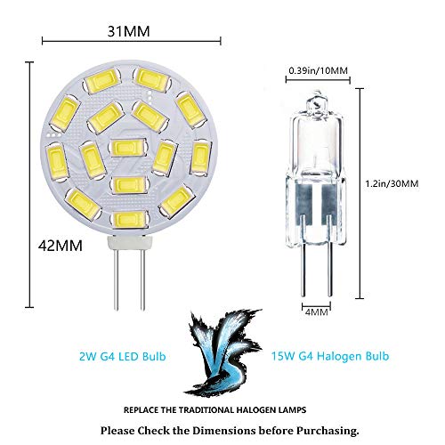 VINBE Lampadine LED G4 3W, equivalenti a lampade alogene da 20-30W, G4 Base AC/DC 12V, 300 LM, luce ad incasso, luce a binario, bianca (6000K, 5 pezzi)