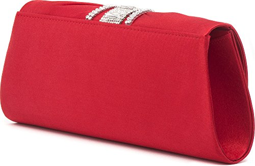 VINCENT PEREZ Borsetta, Borsa a tracolla, Pochette di raso increspato, strass e tracolla rimovibile (120cm),Colore:Rosso