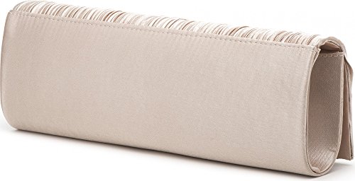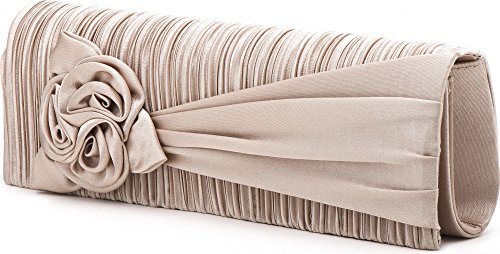 VINCENT PEREZ Borsetta, Borsa a tracolla, Pochette di raso increspato con fiori decorativi e tracolla rimovibile (120cm)