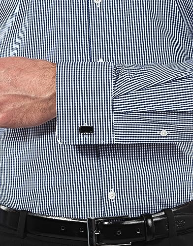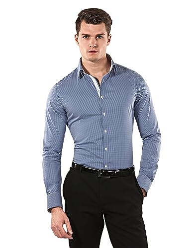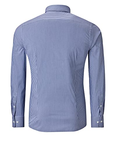 Vincenzo Boretti Camicia Elastica Uomo Eleganti, Taglio Molto Aderente (Extra Slim-Fit), Stretch, Collo Classico, Manica Lunga, a Quadri - Easy Iron, Facile da Stirare Blu Scuro 39-40