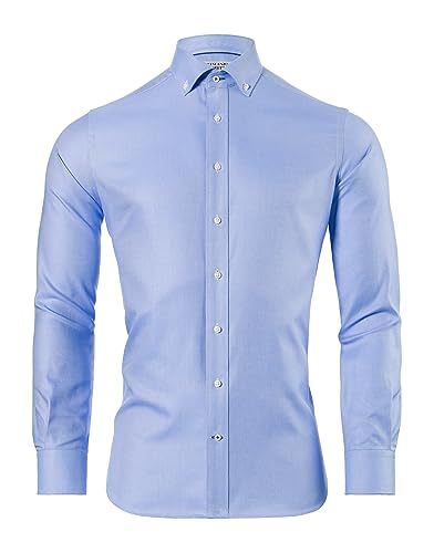 Vincenzo Boretti Camicia, Slim-Fit/Taglio Aderente, Morbido Oxford - Non-Stiro Azzurro 43-44