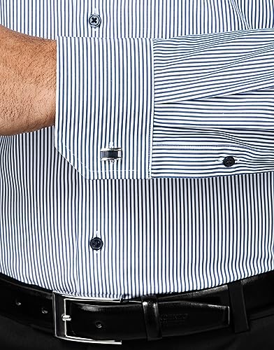 Vincenzo Boretti Camicia Uomo Eleganti, Taglio Aderente/Slim-Fit, Collo Classico, Manica Lunga, a Righe con Inserti in Contrasto - Non Stiro/Non-Iron Blu/Bianco 37-38