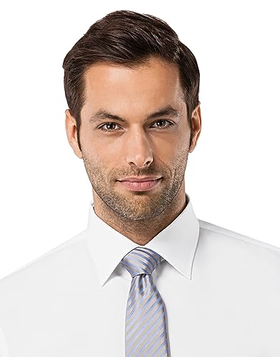 Vincenzo Boretti Camicia Uomo Eleganti, Taglio Aderente/Slim-Fit, Collo Classico, Manica Lunga con Polsini risvoltati, in Tinta Unita - Non Stiro/Non-Iron Bianco 43-44