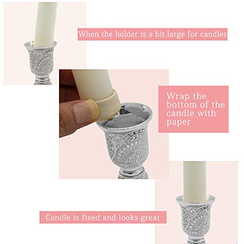 VINCIGANT Portacandele Candela Affusolata Argento Candeliere Candele Affusolate In Metallo Portacandele Affusolato Set Di 2, Portacandele Vintage Per Matrimonio Natale Compleanno-10 cm Di Altezza