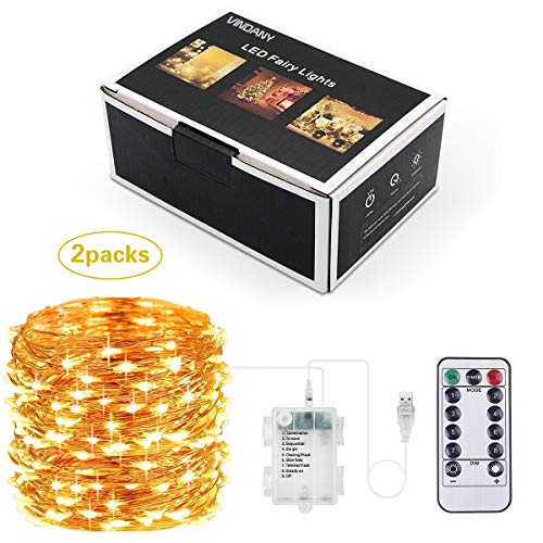 Vindany 2 Pezzi Stringa Luci LED - 33FT 100led Catene Luminose Luci Natalizie USB e Batteria Impermeabile IP65 Fata Luci Decorative da Giardino Filo di Rame Luci Interne per Natale Festa