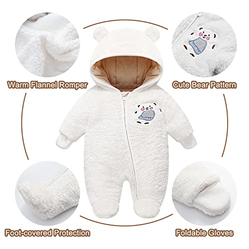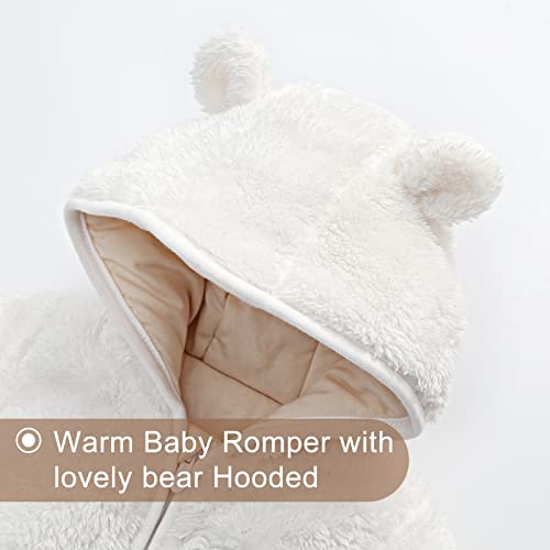 Vine Bambino Tute da neve Neonato Footed Pagliaccetto con Cappuccio Inverno Denso Tutina in Pile, Bianco 12-18 Mesi